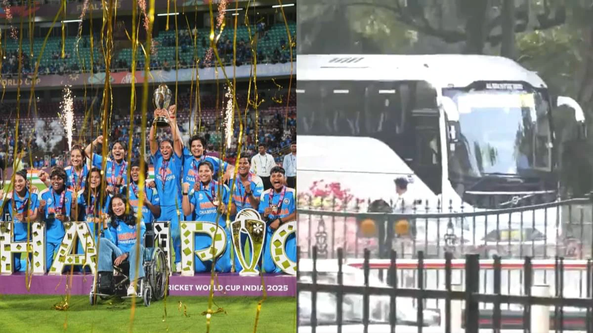 A video footage shared by ANI shows the India Women’s team bus arriving at PM Narendra Modi’s residence at 7, Lok Kalyan Marg.