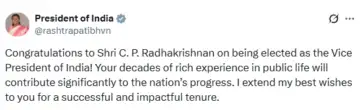 “Congratulations to CP Radhakrishnan on being elected as the Vice President of India! Your decades of rich experience in public life will contribute significantly to the nation’s progress. I extend my best wishes to you for a successful and impactful tenure,” Murmu tweeted.