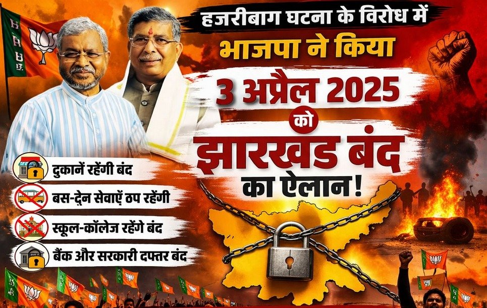 झारखंड में कानून-व्यवस्था को लेकर बीजेपी ने 3 अप्रैल को बंद का ऐलान किया है, लेकिन गुड फ्राइडे के दिन आंदोलन को लेकर ईसाई संगठनों ने विरोध दर्ज कराया है।