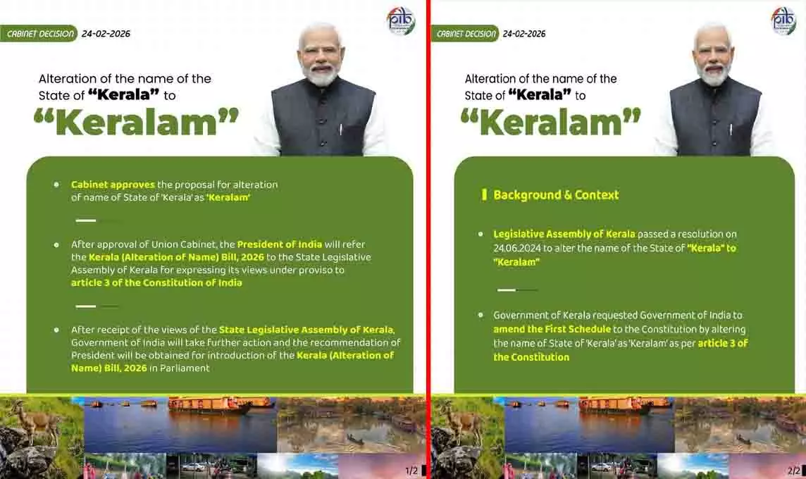 New Delhi: The state of Kerala will now be officially known as “Keralam” after the Union Cabinet, led by Prime Minister Narendra Modi, approved the proposal to change the state’s name.