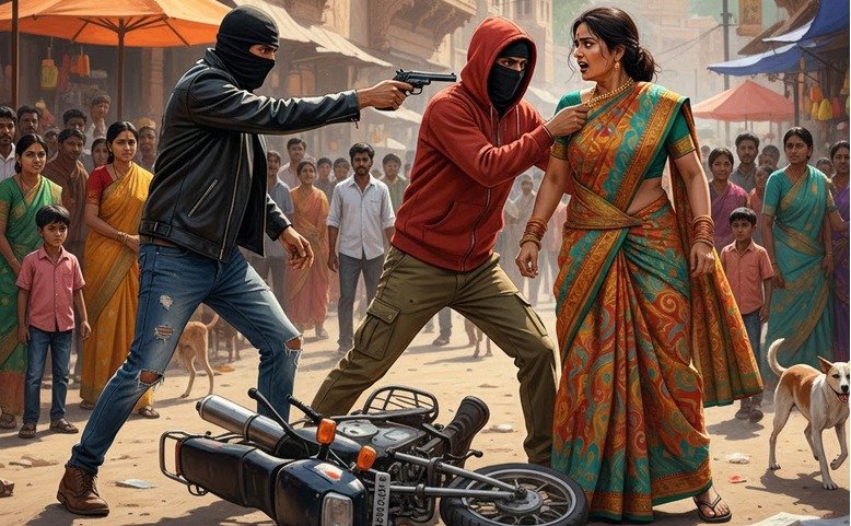 अपराधियों ने चलते-चलते महिला की सोने की चेन झपट ली और तेजी से भागने की कोशिश की। अचानक हुए इस हमले से महिला सड़क पर गिर पड़ी, लेकिन उसने हिम्मत नहीं हारी। उसने पीछे बैठे अपराधी को पकड़ लिया, जिससे संतुलन बिगड़ने के कारण बाइक सवार दोनों अपराधी सड़क पर गिर पड़े।